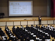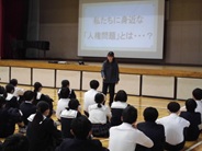 4月21日(火)、前期人権旬間の始まりとして、全校で人権集会を行いました。校長先生から「人権とは、思いやること」、人権主任の小池先生から「人権と聞くとどんなイメージ?」と質問されると「いじめ」「差別」という言葉が出てきました。どんな人種の方も、どんな立場の方も人としてより良く生きる権利があることを忘れずに、思いやりの心をもって行動できるといいです。