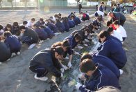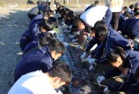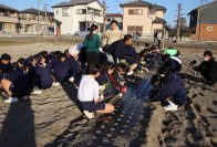 11月17日(月)、1年生が玉ねぎ苗植え付けの体験学習を行いました。地域の方々やJAの皆様にも準備やご協力をいただき、植え付け方のご指導を受けながら、楽しく行わせていただきました。マルチの穴に1本ずつ丁寧に植えていきました。来年の5月には育てていただいた玉ねぎを収穫させていただく予定です。とても楽しみです。