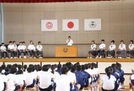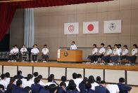 10月3日(金)、第44期の生徒会本部役員を選ぶ選挙が行われました。はじめに選挙管理委員長の生徒からの話がありました。その後、それぞれの推薦人の生徒の応援演説の後、立候補の生徒がそれぞれの思いや抱負を熱く語ってくれました。全生徒の演説の後、生徒一人一人が思いを込めて投票を行いました。