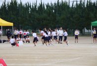 10月7日(火)、第43回体育祭を行いました。曇りの涼しいお天気の中、行うことができました。昨年より1か月遅らせての実施を計画し、練習を積み上げてきました。「炎~勝利も笑いも、どっちも欲張る全力戦~」のスローガンのもと、一人一人が全力で競技に臨み、係の仕事もしっかりとやり遂げてくれました。
